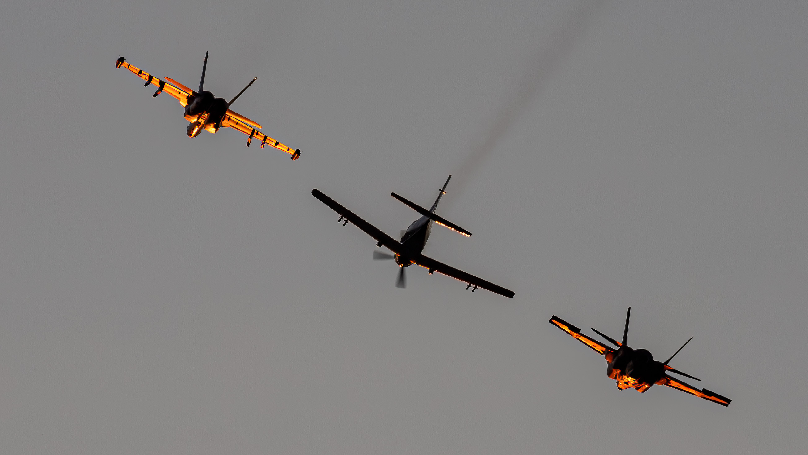 - 2022, AD-5W, AirVenture, Boeing, Douglas, EA-18G, EA-1E, EAA, F-18, F-18G, F-35, F-35C, F/A-18, Growler, Heritage flight, Hornet, JSF, Lightning II, Lockheed, Marine Corps, McDonnell Douglas, Oshkosh, Skyraider, Super Hornet, Tailhook Flight, US Marine Corps, US Navy, USA, USMC, Wisconsin