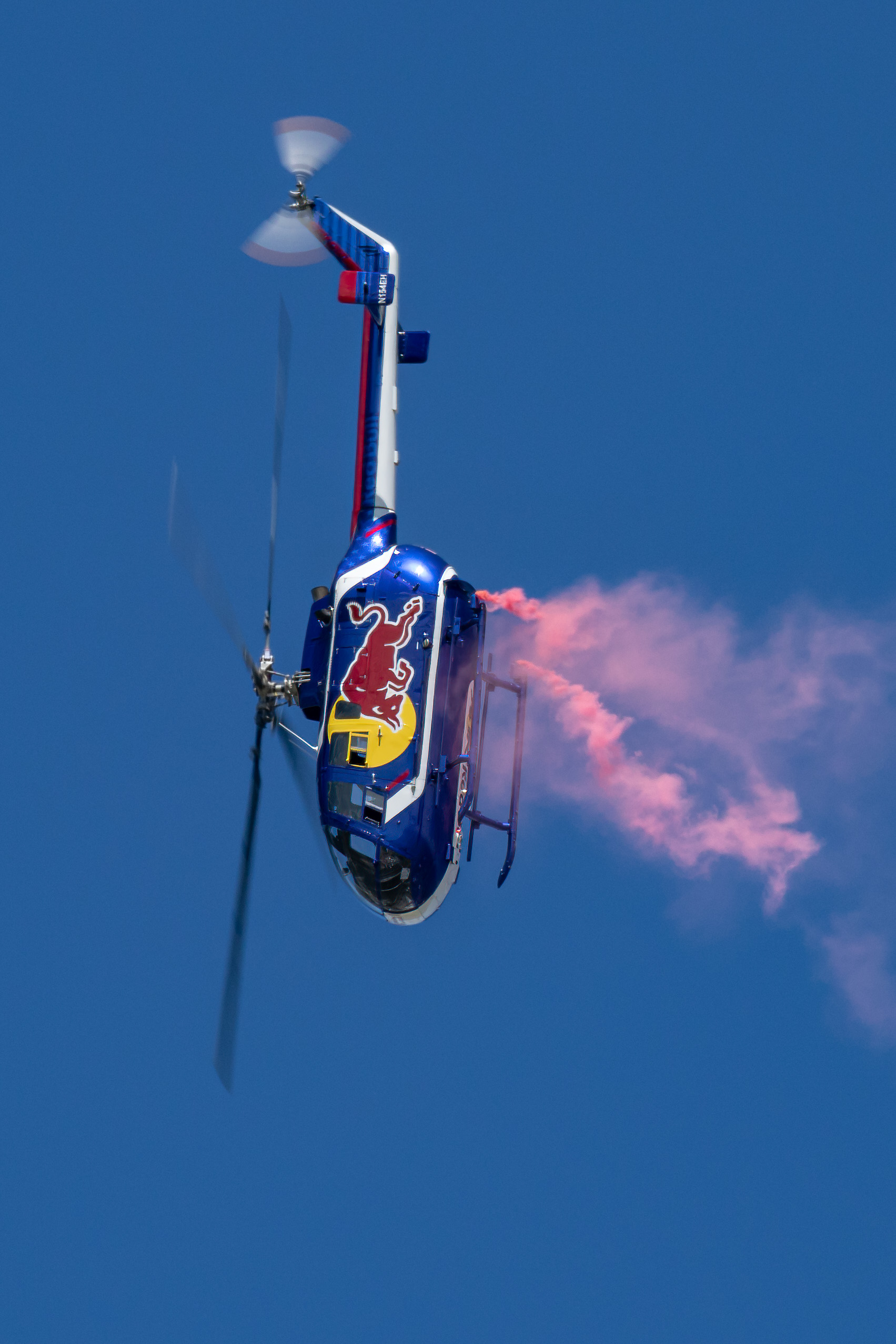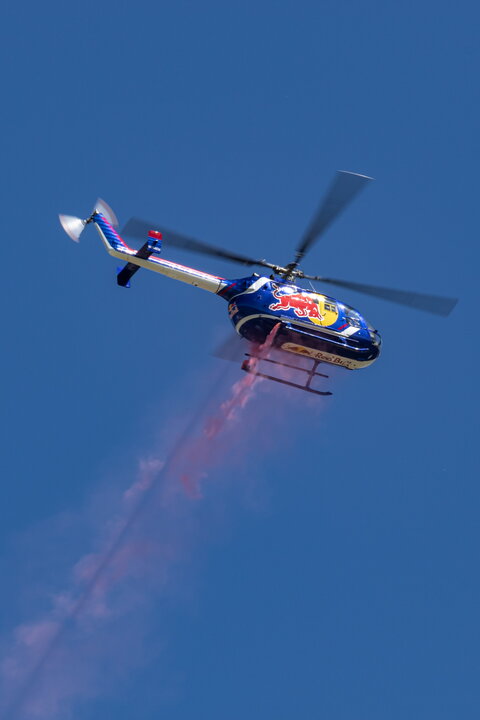 - 2022, Aaron, AirVenture, Bo105, Chuck Aaron, EAA, helico, hélicoptère, MBB, Oshkosh, parachute, Red Bull Air Force, rotary wing, rotorcraft, USA, voilure tournante, Wisconsin